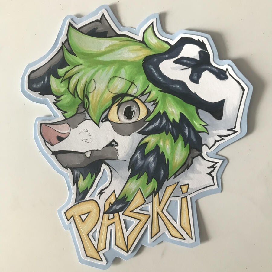 CURRENTLY UNAVAILABLE - A laminated badge about the size of a hand, completed with alcohol markers and pencils. Text can be custom or removed.