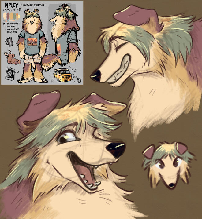 "Painted" all on one layer. Includes experimental shading and various texture.